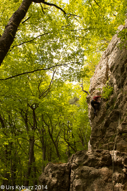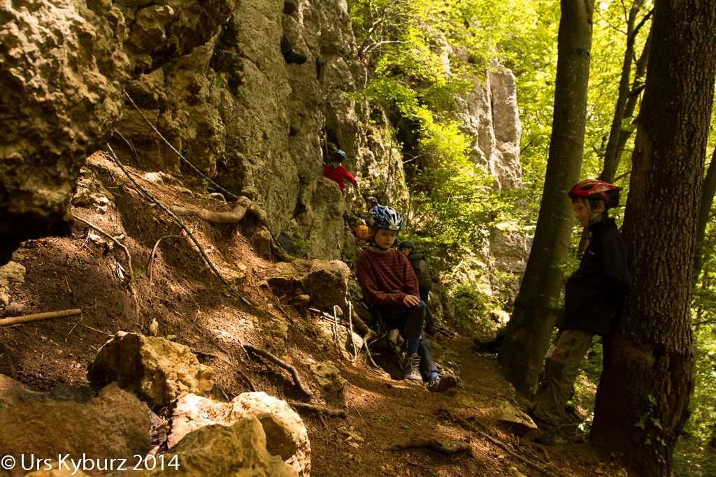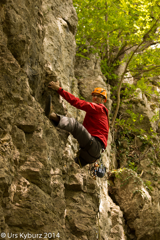 Während ich früher fast jedes Wochenende irgend eine Wand hochkraxelte, zumindest während der Sommersaison, haben sich die Tätigkeiten inzwischen verlagert auf kindertauglichere Aktivitäten. Aber allmählich sind unsere Kinder auch soweit, dass sie im Fels vorsteigen und Spass daran haben. So lag es nahe, dass wir am Kletterkurs unserer SAC-Sektion teilnahmen, der im Klettergarten Homberg Flüeli in Küttigen stattfand.