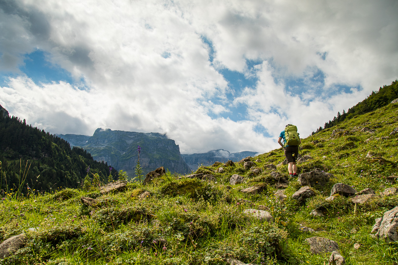 Die Jungs waren im Bergsteigerlager des SAC, die Frau und ich hatten also freie Bahn. Sie hatte noch einen Hotelgutschein, den wir in Braunwald einlösen wollten. Die Anreise sollte aber nicht schnöde mit Auto oder Zug erfolgen, sondern wir wollten zu Fuss nach Braunwald.