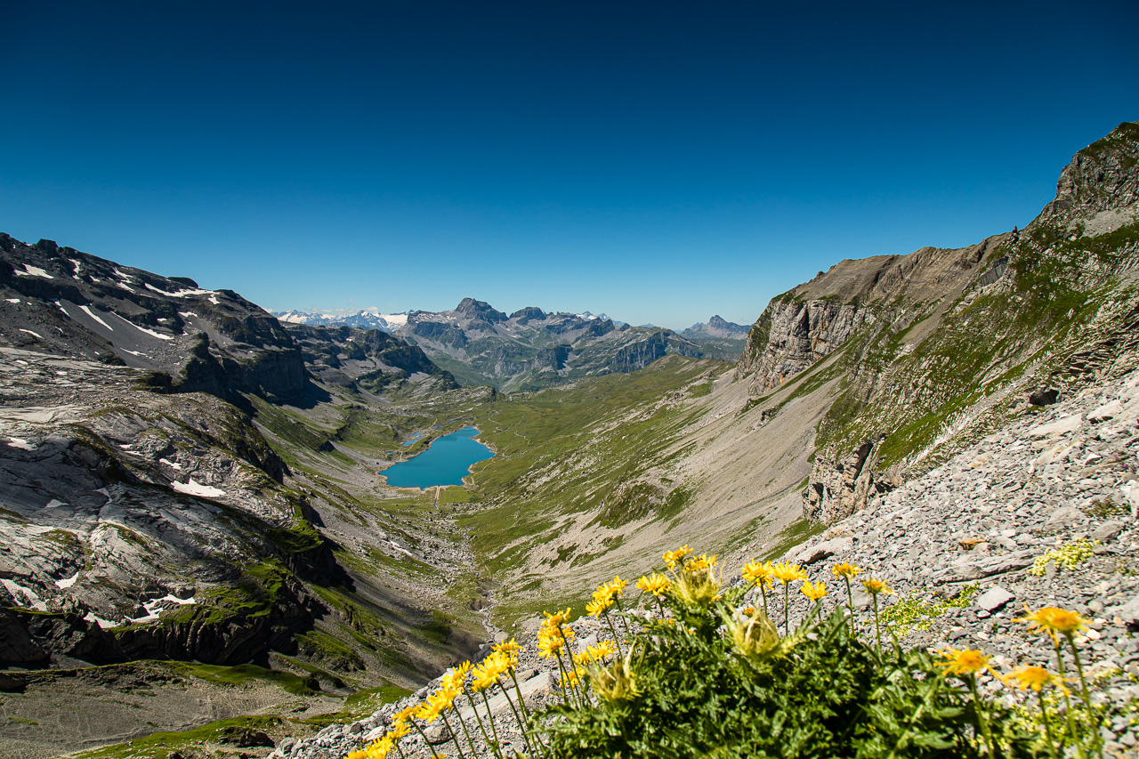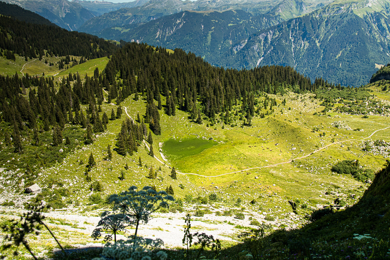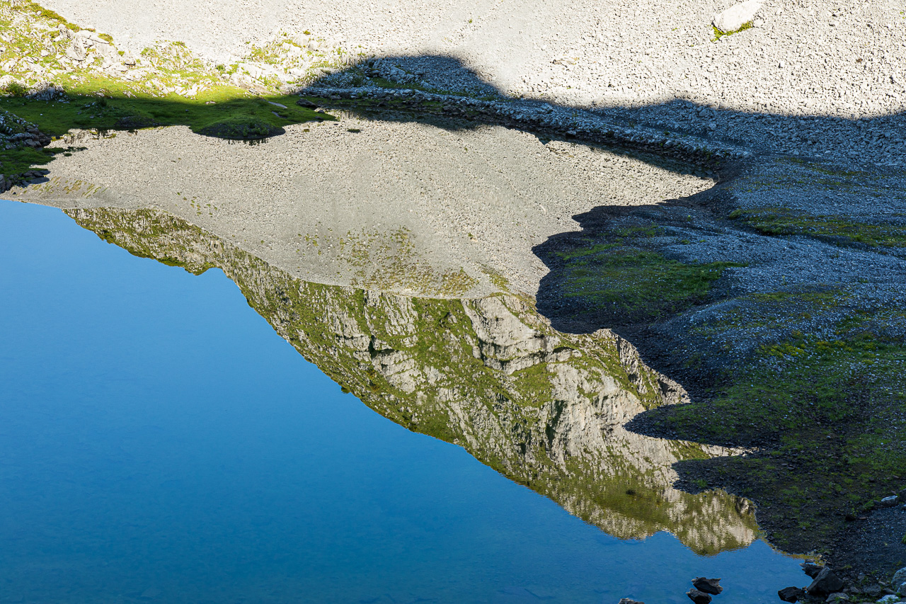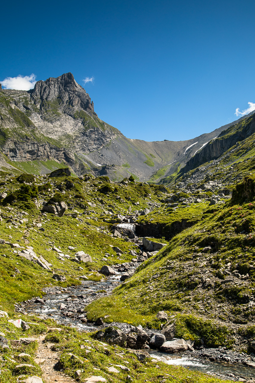 Nach dem See steigt der Weg an, wird schmal. Ist zuerst alles noch grün um uns herum, wird es nach oben immer karger. Zuletzt halten sich nur noch die Spezialisten unter den Pflanzen.