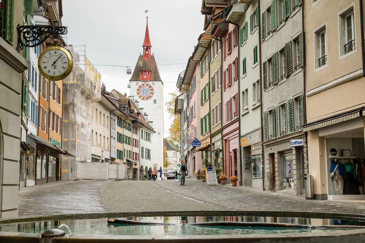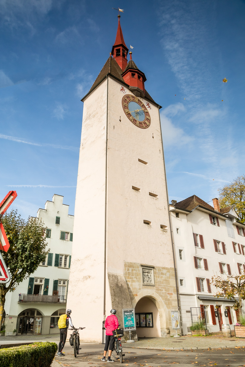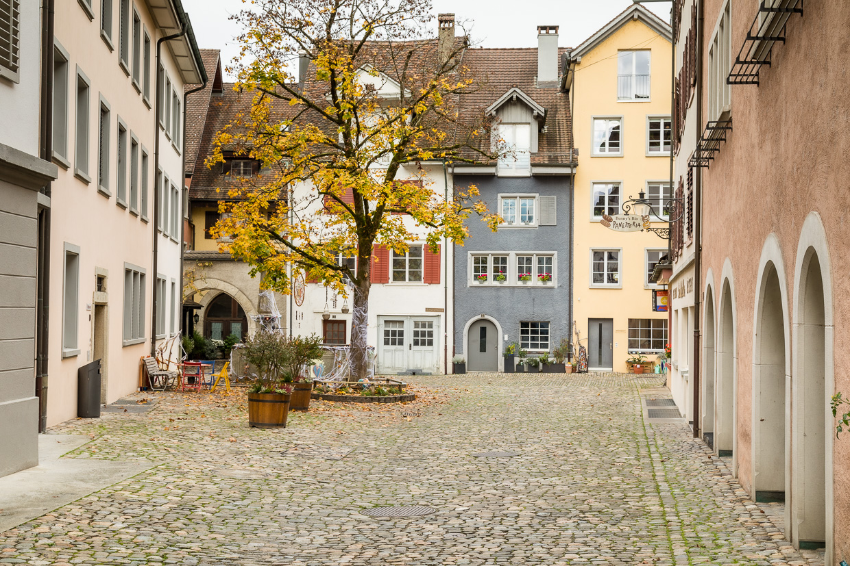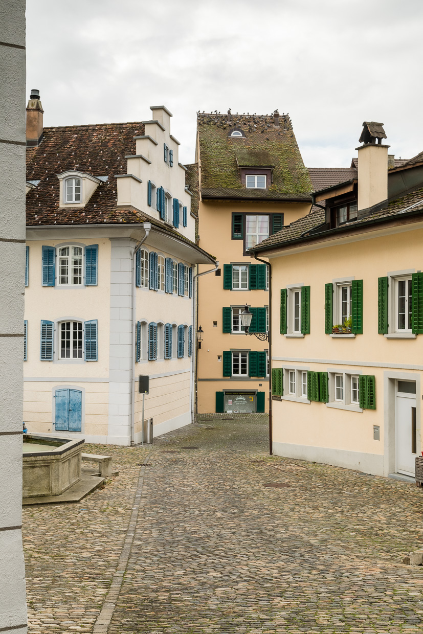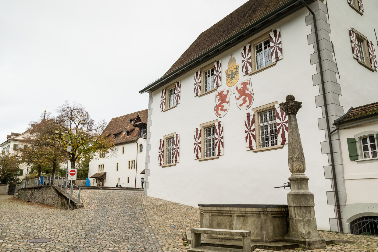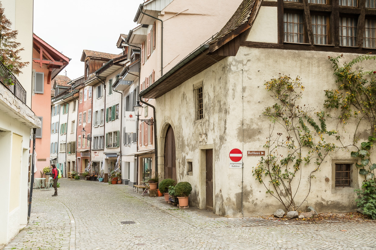 Nun geht es abwärts, durch Widen hindurch, vorbei am Gyrenweiher. Wir durchqueren nochmals ein kleines, hübsches Wäldchen, bevor wir den letzten Kilometer Strassen entlang gehen, was leider nicht vermeidbar ist ohne grossen Umweg. Wir sind froh, als wir das autofreie Altstädtchen erreichen, welches dafür umso mehr glänzt, verwinkelte Gassen und schön restaurierte Gebäude erfreuen unser Auge. Das feiern wir in einem der wenigen Restaurants, die am heutigen Feiertag am 1. November offen haben. Wir begiessen die Entdeckung eines weiteren Stückes Aargau mit einem Kaffee und einem Stück Kuchen.