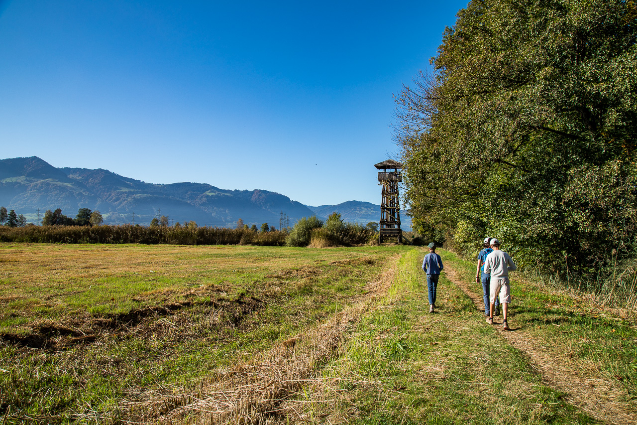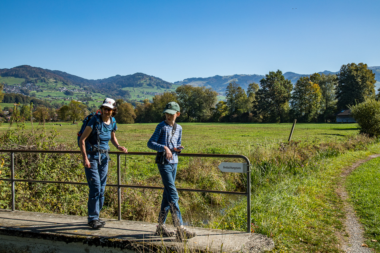 Wir bewegen uns weiter zu einem Seitenkanal der Linth. Auf einer Mauer sitzen zwei Eisvögel, der eine mit einem Fisch im Schnabel, den er seiner Herzensdame überreicht. Nun haben wir genug gesehen, wir kehren wieder um. So ein Spaziergang tut gut und ist interessant.